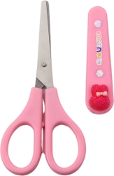 De schaar is uitgerust met een decoratieve beschermkap die de bladen tegen beschadiging beschermt en de inhoud van de rugzak of etui veiligstelt. De pastelroze kleur met kleurrijke decoratie geeft het product een unieke uitstraling.