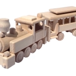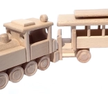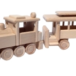 Het treintje is gemaakt van massief beuken en enkel behandeld met was en polijsting. Het behoudt de authentieke houtnerf, is vriendelijk en veilig voor kinderhandjes.