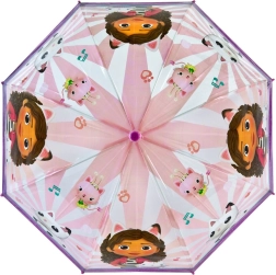 De Gabby's Dollhouse paraplu is speciaal ontworpen voor kinderen, met de nadruk op veiligheid en comfort. De koepelvorm biedt uitstekende bescherming tegen de regen, terwijl de motieven van Gabby, Pandy Paw en Cat Elf voor speelsheid zorgen. Hij is ideaal voor kinderen vanaf 3 jaar dankzij het eenvoudige handmatige openen en sluiten, dat veilig is en is afgestemd op de behoeften van kinderen. Het afgeronde handvat zorgt voor een comfortabele grip, wat je zult waarderen tijdens lange, regenachtige wandelingen.