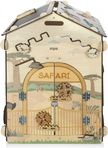 Het grote safarihuis is meer dan een speelgoed – het is een schuilplek, basis en speelruimte. Dankzij de doordachte activiteiten aan alle zijden trainen kinderen oog-handcoördinatie, vingerbehendigheid en leren ze de wereld van dieren op speelse wijze kennen. De robuuste houten constructie zorgt voor veiligheid en een lange levensduur.