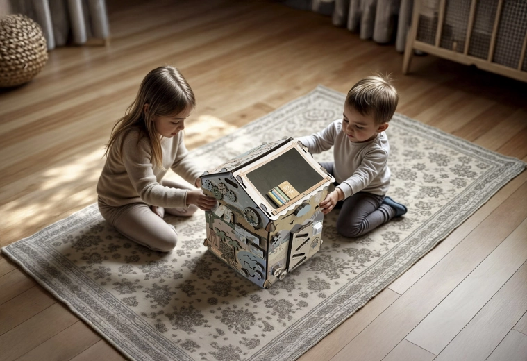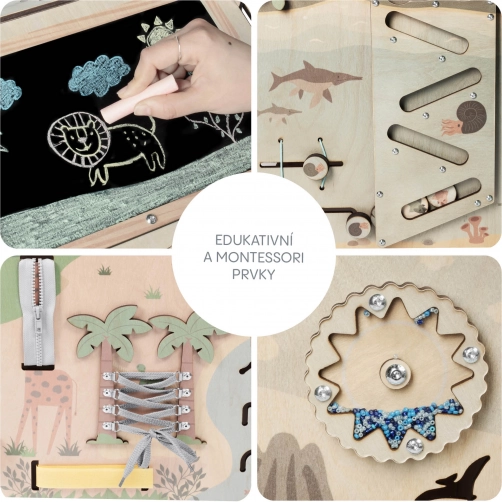 Doolhoven, tandwielen, schakelaars, ritsen en veters trainen oog-handcoördinatie, vingerbehendigheid en geduld bij het oplossen van taken.