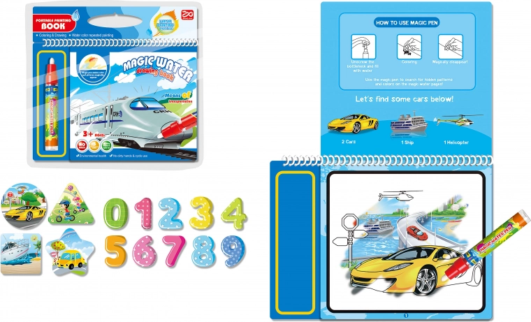 Beleef het plezier van creatief bezig zijn met waterverf-kleurplaten van vervoersmiddelen. Ontdek een kleurrijke wereld zonder rommel dankzij unieke kleurplaten die met water geactiveerd worden.