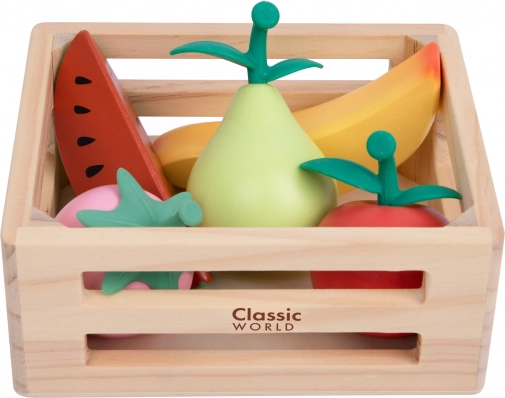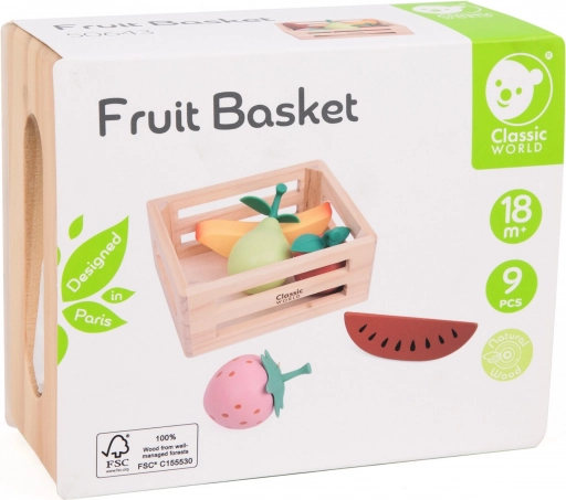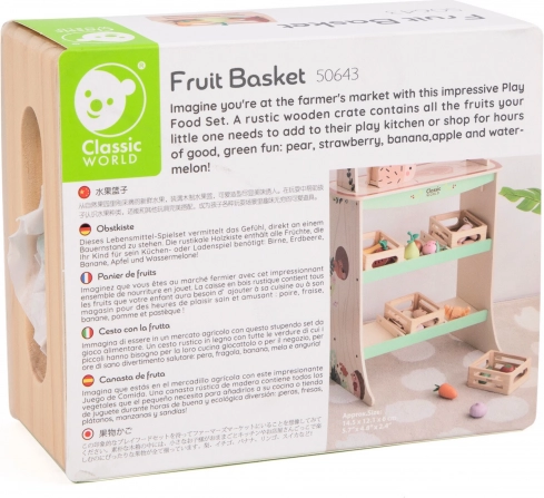 We presenteren de houten fruitmand van het merk Classic World, die plezier brengt in elk kinderspel. Deze geweldige set is gemaakt van hoogwaardig hout en is ideaal voor het spelen van winkel of keuken.