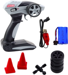 De auto is uitgerust met LED-verlichting (voor, achter, neon), wat zorgt voor een opvallende look, vooral tijdens avondritten. De geavanceerde 2,4 GHz-controller biedt nauwkeurige besturing en een bereik tot 25 meter. De turbofunctie maakt het mogelijk om direct te versnellen, terwijl extra banden en pylonen het creëren van een eigen parcours en het verbeteren van rijtechnieken mogelijk maken.