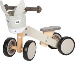 De houten loopfiets met ezelthema is ideaal voor kinderen die leren zich veilig en vol zelfvertrouwen te bewegen. De zeer stabiele constructie in combinatie met zachte, gerubberde wielen beschermt niet alleen vloeren, maar zorgt ook voor stille ritten. Ergonomische rubberen handvatten geven kinderen een stevige grip en eenvoudige bediening.