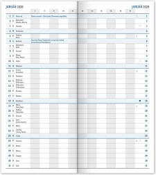 Praktische en slanke zwarte agenda met maandindeling die gemakkelijk in elke tas past. Bevat een Slowaakse kalender en is ideaal voor snel plannen.