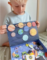 Magnetische puzzel van het merk TOOKY TOY is een prikkelend en leuk spel dat jonge ontdekkers meeneemt op een ruimtereis. Bevat 12 unieke ruimtepatronen samengesteld uit magnetische puzzelstukjes.