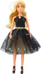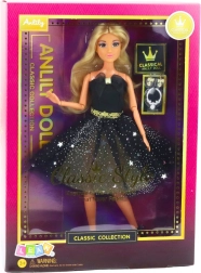 De betoverende pop Anlily in een zwarte jurk is een perfecte aanvulling op elke kinderspeelcollectie. Ze trekt kinderen aan niet alleen met de jurk met een elegante gouden riem, maar ook met elk detail, zoals de glinsterende brokaat. Het lange blonde haar is ideaal om te kammen en te stylen, waardoor de creativiteit en esthetische beleving van het kind wordt gestimuleerd.