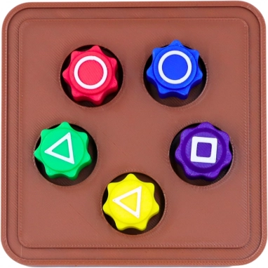 De set bevat 5 gekleurde stenen, vervaardigd met 3D-print technologie van duurzaam plastic. Elke steen heeft een andere opvallende kleur: rood, blauw, geel, groen en paars, wat het spelen makkelijker maakt en de aandacht trekt. Op elke steen staan karakteristieke symbolen (cirkel, driehoek, vierkant).