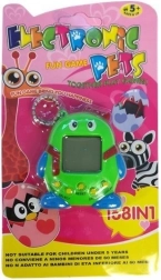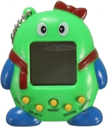 Elektronisch huisdiertje Tamagotchi met een afneembare sleutelhanger-ring en compact formaat, zodat kinderen hun interactieve vriend overal mee naartoe kunnen nemen. Biedt 168 verschillende diertjes en leert kinderen verantwoordelijkheid en systematiek.