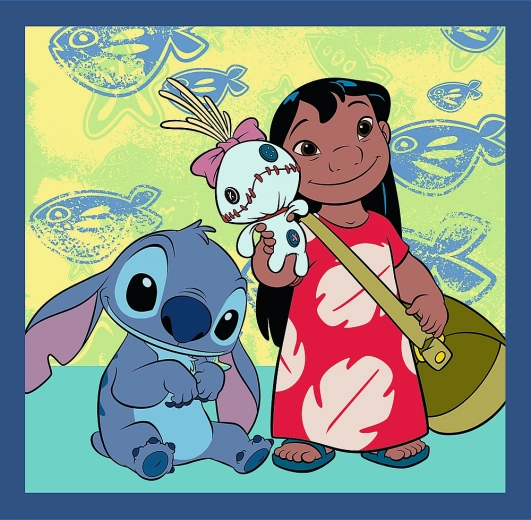 Puzzel 3-in-1 met LILO & STITCH van Trefl. Drie afzonderlijke legpuzzels, grootste 200 × 195 mm. Ecologische materialen, geschikt vanaf 3 jaar.