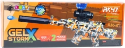 De karabijn schiet watergelkogels die zacht en veilig zijn na het weken. Reikwijdte en nauwkeurigheid maken team- en solo spellen mogelijk die reflexen, precisie en bewegingscoördinatie bij kinderen verbeteren. Het speelgoed is geschikt voor kinderen boven de 14 jaar en is een geweldig alternatief voor traditionele schietpistolen - de munitie is licht, biologisch afbreekbaar en laat geen sporen na.