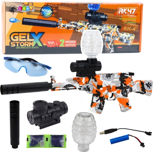 De karabijn voor watergelkogels AK47 is een modern speeltje dat een realistisch uiterlijk combineert met dynamisch en veilig entertainment. Dankzij het opvallende ontwerp in graffiti stijl en robuuste constructie, trekt het zeker de aandacht van jonge liefhebbers van militaire stijl en actieve tijdsbesteding.