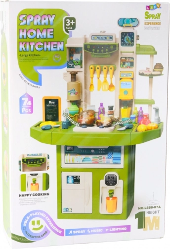De grote kinderkeuken Spray Home Kitchen is de ideale keuze voor kleine chefs. Met 71 onderdelen kunnen kinderen vrij, creatief en realistisch spelen met koken, bakken en het serveren van maaltijden, inclusief het afwassen van de vaat.