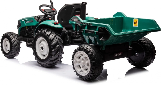 Beleef het plezier van rijden met deze accutrekker, geleverd met een donkergroene aanhanger. Dankzij de krachtige 24V-accu en de robuuste constructie is hij ideaal voor kleine boeren en nieuwsgierige ontdekkers.