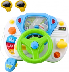 Het simulatorpaneel is uitgerust met een groot stuur met claxon, een draaiknop voor het contact, een versnellingspook en richtingaanwijzers die realistische geluiden en lichten geven in de rijrichting. Drie knoppen aan de linkerkant helpen kinderen de geluiden van politie-, brandweer- en hulpverleningsvoertuigen te onderscheiden.