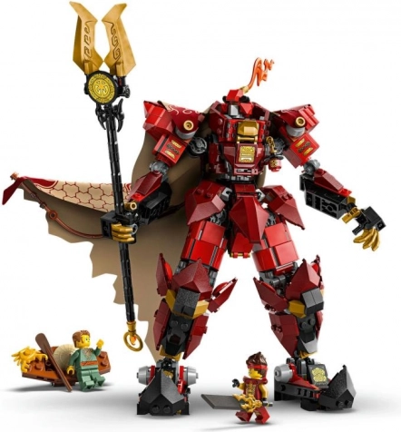 Bouw een epische scène uit de wereld van NINJAGO: een imposante rode mecha met mantel en lange speer neemt het op tegen een oeroud wezen uit de zee. Het model blinkt uit door gedetailleerd pantser, doordachte constructie en uitstekende poseerbaarheid voor zowel actieposes als een strakke display.