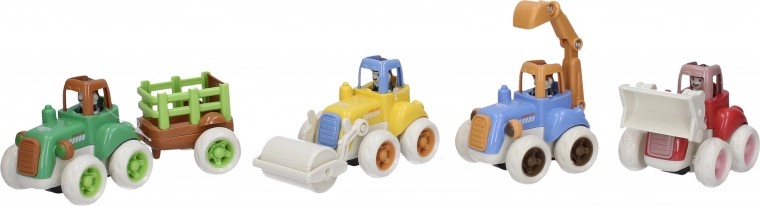 • Vier varianten beschikbaar: wals, graafmachine, bulldozer en tractor.