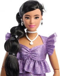 Ontdek de modewereld met de Barbie Deluxe model in een glinsterende paarse outfit die meteen de aandacht trekt. Dankzij het gearticuleerde lichaam zijn natuurlijke poses mogelijk, terwijl de vele accessoires – van zilverkleurige sandalen tot handtas en sieraden – de fantasie prikkelen en uitnodigen om eigen modeverhalen te creëren.
