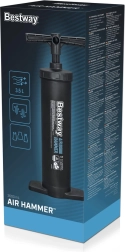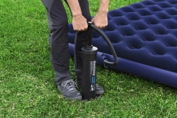 De handmatige luchtpomp van Bestway is de ideale oplossing voor het snel oppompen van matrassen, strandballen of opblaasbare ringen. Dankzij de verwisselbare mondstukken is hij geschikt voor alle soorten opblaasbare producten en beweegt hij lucht in twee richtingen, wat de oppomptijd verkort.