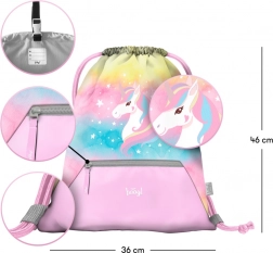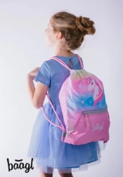 Set voor eersteklassers BAAGL Zippy plus Rainbow Unicorn met een lichte en duurzame school-aktetas, een etui met één laag en een praktische gymsack. Alle componenten zijn gemaakt van ecologische materialen en bieden een reeks praktische functies.