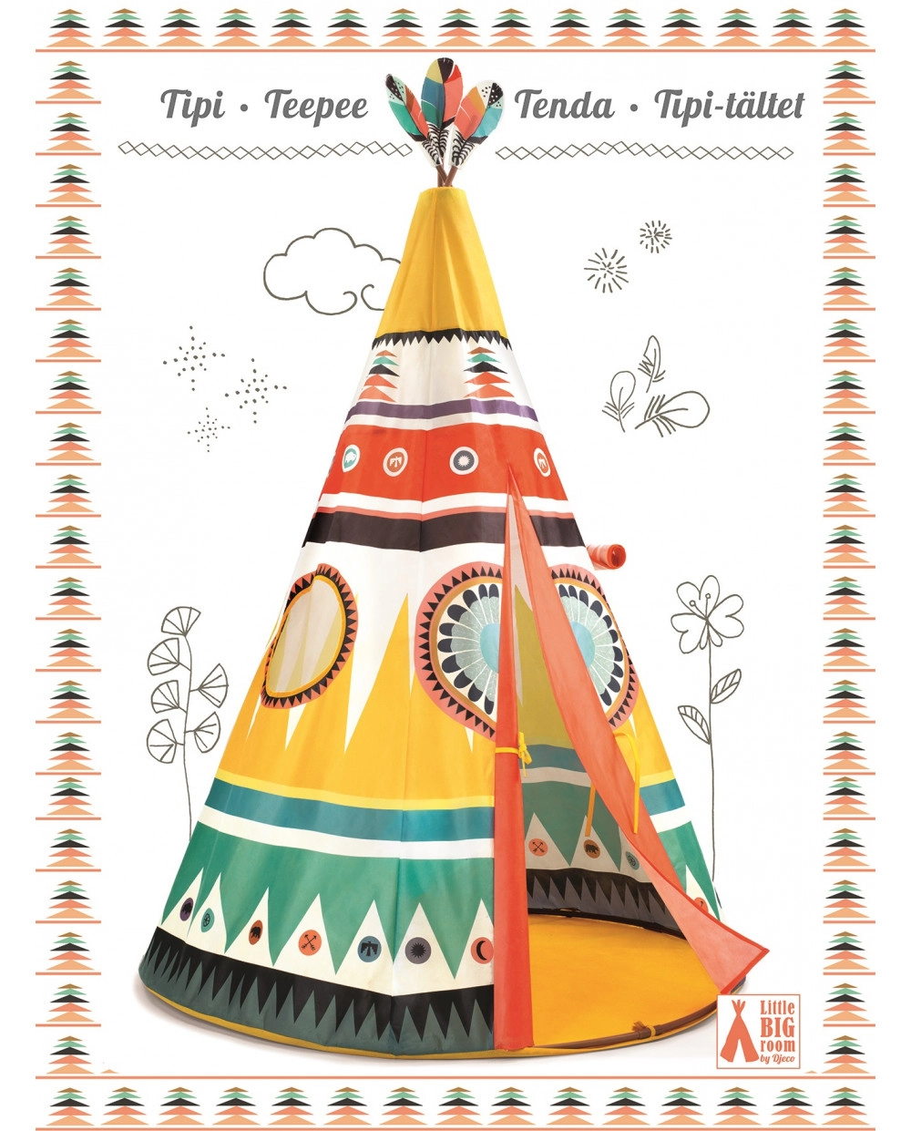 De kindertent Djeco Teepee neemt kleine avonturiers mee naar een fantasiewereld met kleuren geïnspireerd door de indiaanse cultuur. Licht draagbaar en eenvoudig te monteren, biedt hij volop ruimte om te spelen en te ontspannen.