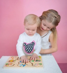 De plaat is gemaakt van stevig multiplex dat bestand is tegen dagelijks gebruik. Het speelgoed stimuleert geduld, concentratie en natuurlijke kinderlijke nieuwsgierigheid, en biedt tegelijkertijd veilig en zinvol vermaak.