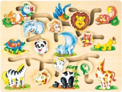 Houten motorisch doolhof met dieren