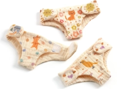 Deze set stoffen luiers van DJECO biedt kinderen een authentieke ervaring bij het verzorgen van poppen. De luiers zijn gemaakt van zachte stof, hebben praktische zijdelingse klittenbandsluitingen en worden dankzij de schattige prints een favoriet onderdeel van elke kinderlijke uitzet. Ze zijn ontworpen om steeds weer aan- en uitgetrokken te worden, wat creatief spel en de ontwikkeling van sociale vaardigheden stimuleert.