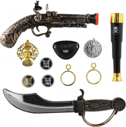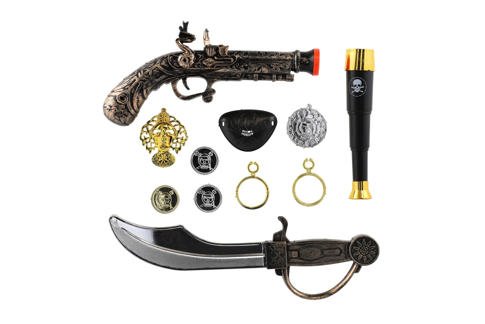 Duik in de wereld van piraten met deze kunststof piratenset, die elk kind verandert in een dappere kapitein van een piratenschip.