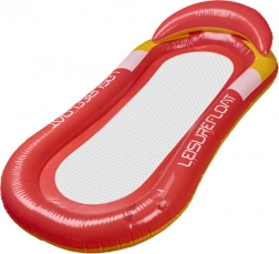 De combinatie van rood, geel en wit geeft het luchtbed een moderne en frisse look.