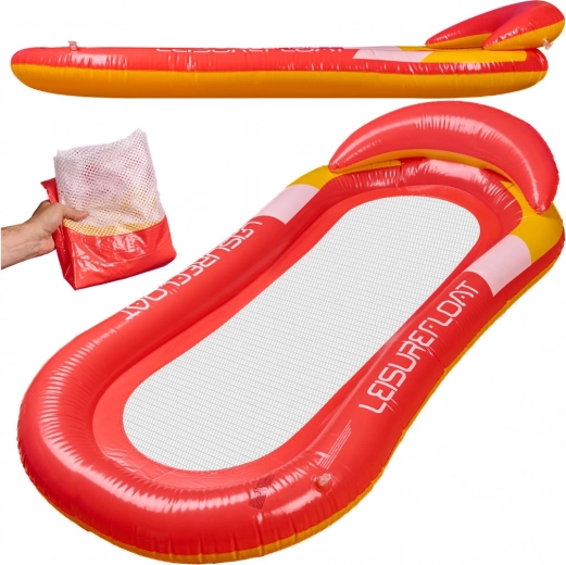Opblaasbaar strandluchtbed is ideaal voor ontspanning op het water. Het is gemaakt van duurzaam materiaal en biedt comfort dankzij de netbodem en het kussengedeelte.