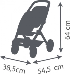 De afmetingen van de wagen zijn 54,5 x 38,5 x 64 cm, wat eenvoudig manoeuvreren en opbergen mogelijk maakt. Pop niet inbegrepen.