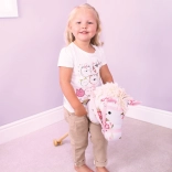 Geniet van uren actieve pret met dit schattige paardje met bloemenpatroon op een houten stok. Ideaal om beweging en lichaamsbeweging te stimuleren wanneer kinderen hun paardje door de speelkamer of tuin leiden.