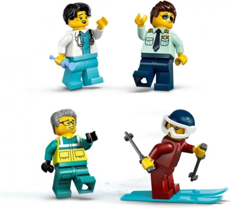 - Minifiguren van een piloot, arts, hulpverlener en skiër