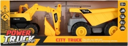 Geweldige set voor kleine bouwers! Twee robuuste kunststof bouwvoertuigen met vrijloop die perfect in elke collectie passen. Ze rijden soepel over elk oppervlak – geef ze een klein duwtje en ze gaan.