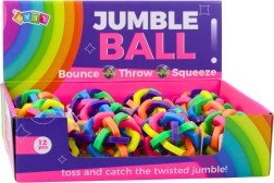 Kleurige bal Jumble Ball is het ideale speelgoed voor kinderen en volwassenen die op zoek zijn naar antistressplezier. Gemaakt van elastische, zachte banden die een driedimensionaal net vormen, biedt hij een prettig tactiel gevoel en stimuleert activiteit.