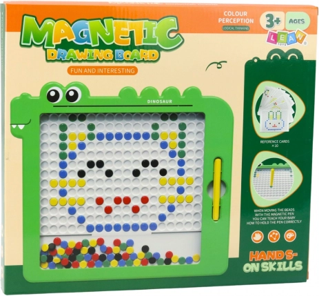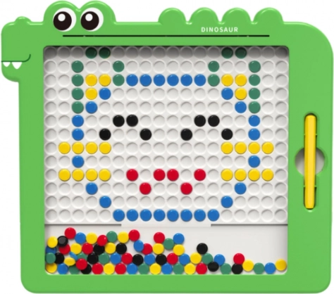 Magnetisch bord Dino is een uitzonderlijk speeltje voor kinderen dat een combinatie van leren en plezier biedt. Dankzij de gekleurde magnetische schijven en de tekentool kunnen kinderen verschillende afbeeldingen maken zonder papier en verf nodig te hebben.