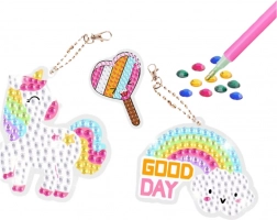 De patronen en plekken voor het plakken van diamanten zijn gemarkeerd – het is niet nodig om speciale vaardigheden te hebben voor het maken van originele stickers en sleutelhangers. Het is een ontspannende activiteit die concentratie, geduld en handvaardigheid ontwikkelt. Ideaal voor zowel individuele creatie als plezier met het gezin.
