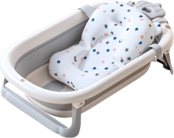 Het badje is voorzien van een stabiel opvouwbaar frame met antislipvoetjes voor extra grip en om ongewenst verschuiven te voorkomen. Het is gemaakt van veilige, niet-giftige materialen PP en TPE, die zacht zijn voor de gevoelige babyhuid en bestand tegen schade. Bij de verpakking is een zacht badmatje inbegrepen, dat de baby in een comfortabele positie houdt en warmte en veiligheid biedt.