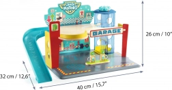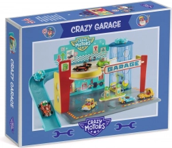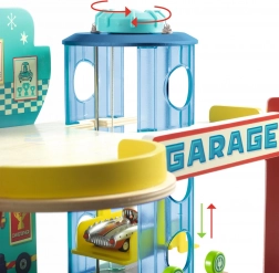 Houten garage van Djeco is een geïllustreerd speelgoed dat perfect past in de wereld van Crazy Motors. Het bevat een eenvoudig te bedienen lift, afneembare accessoires en biedt leuke parkeermogelijkheden.