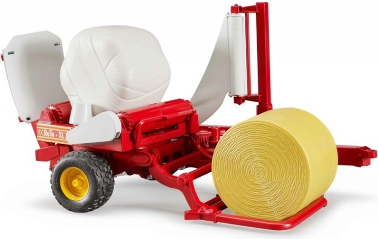 De constructie van hoogwaardige ABS-kunststof zorgt voor een lange levensduur, nauwkeurige afwerking en een soepele werking van de bewegende delen. In de set vind je twee balen – wit en geel – en de wikkelmachine is compatibel met BRUDER BR12315 en BR02345 balen.