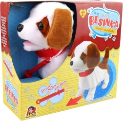 Schattig hondje Besinka met interactieve reactie op een fluitje brengt veel plezier voor kinderen vanaf 3 jaar. Blaas simpelweg op het fluitje en kijk hoe Besinka beweegt en reageert.