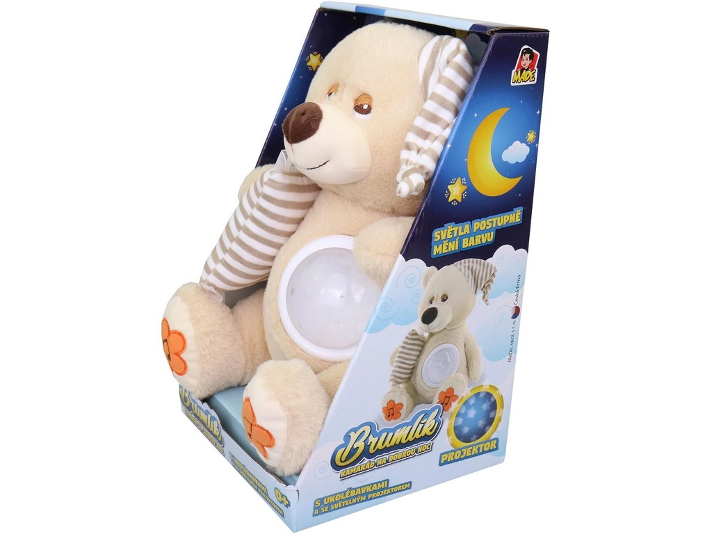 MaDe Beertje Brumlík is een geweldige metgezel voor het slapengaan voor de allerkleinsten. Met slaapliedjes en een projector helpt hij je kind gemakkelijker in slaap te vallen.