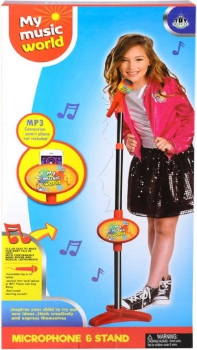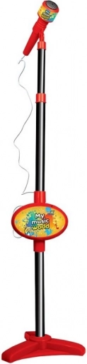 Kinder karaoke microfoon op batterijen: plezier voor kleine zangers. Aansluiting voor extern apparaat, standaardhoogte 105 cm.