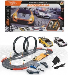 Je hoeft alleen de baan in elkaar te zetten, de adapter aan te sluiten en racen maar! Wie van jullie wordt de snelste coureur? Deze racebaan is een geweldige manier om tijd door te brengen met familie of vrienden.