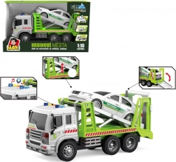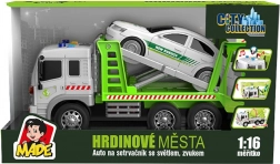 Deze MaDe takelwagen maakt deel uit van de populaire Tsjechische City Collection en is uitgevoerd in schaal 1:16. Het voertuig is 26 cm lang en dankzij het kwalitatieve kunststof kan het zelfs de drukste speelmomenten aan. Voor kinderen vanaf drie jaar is het een ideale speelgoedset die hun verbeelding en motorische vaardigheden stimuleert.