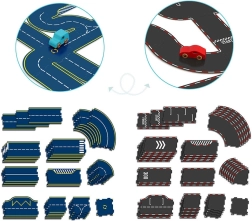 Dubbelzijdige racebaan Vilacity biedt kinderen twee verschillende speelvlakken – een racebaan en een klassieke weg. Dit speelgoed stimuleert verbeeldingskracht en creatief denken dankzij de veelzijdigheid.