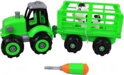 Deze schroeftractor met aanhanger is geweldig speelgoed voor kinderen vanaf 3 jaar. Hij heeft een aantrekkelijk design dat de aandacht trekt en vermaakt. Kinderen kunnen de tractor en aanhanger in elkaar zetten en uit elkaar halen, wat helpt bij de ontwikkeling van de fijne motoriek.