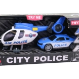 Geniet van het speelplezier met dit model van een helikopter met politiewagen. De helikopter heeft een werkende rotor en is ideaal om binnen of buiten mee te spelen.